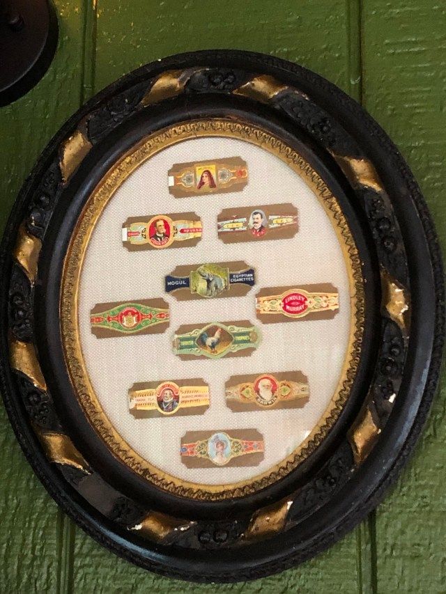 The cigar bands are each little works of art in themselves! Each one is different and so colorful. What a unique and wonderful addition to the vintage smoking room theme! I love accessories that tell a story.