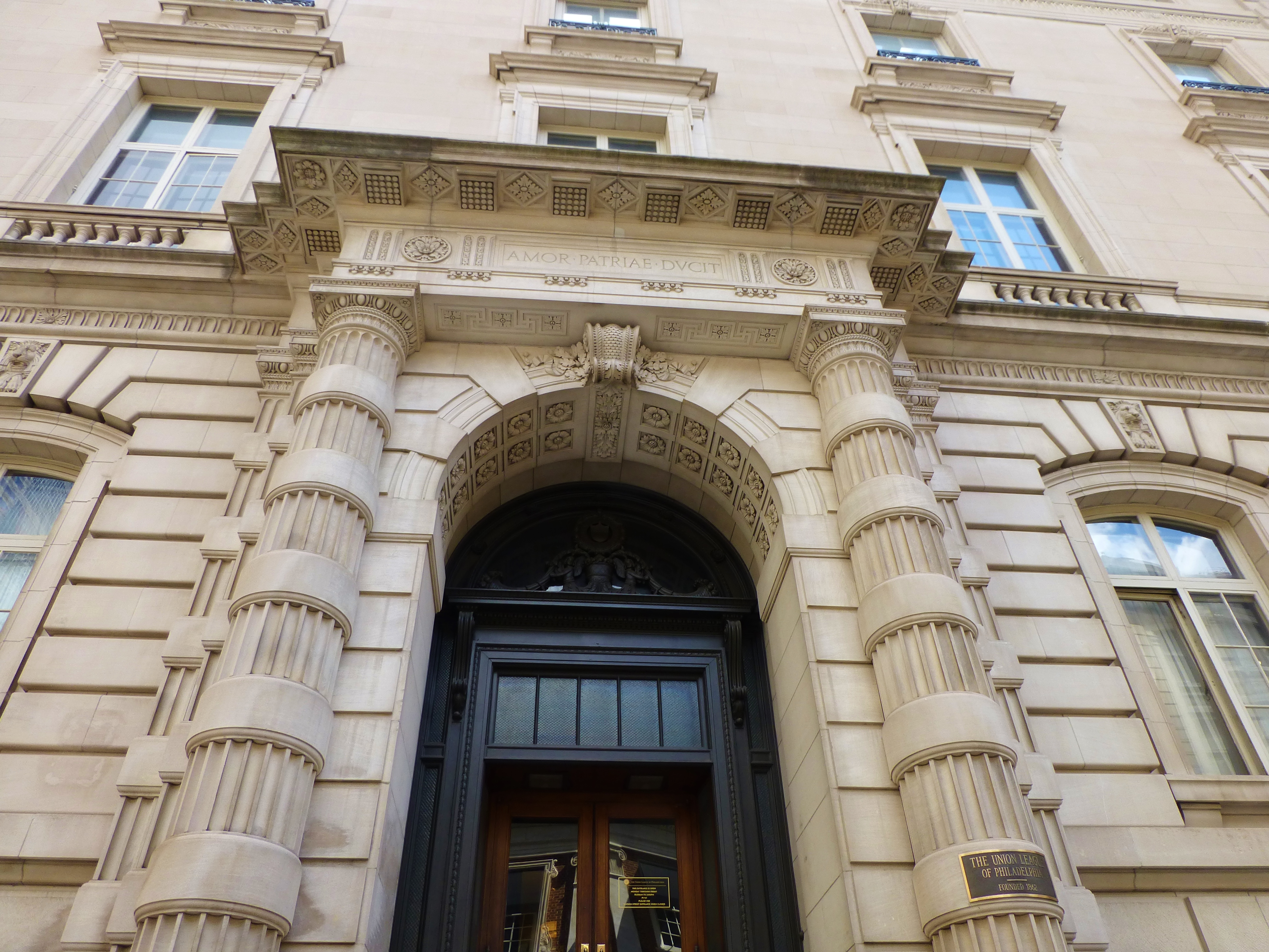 The glorious façade of the Union League with dramatic twin circular staircases is on Broad Street in Philadelphia
