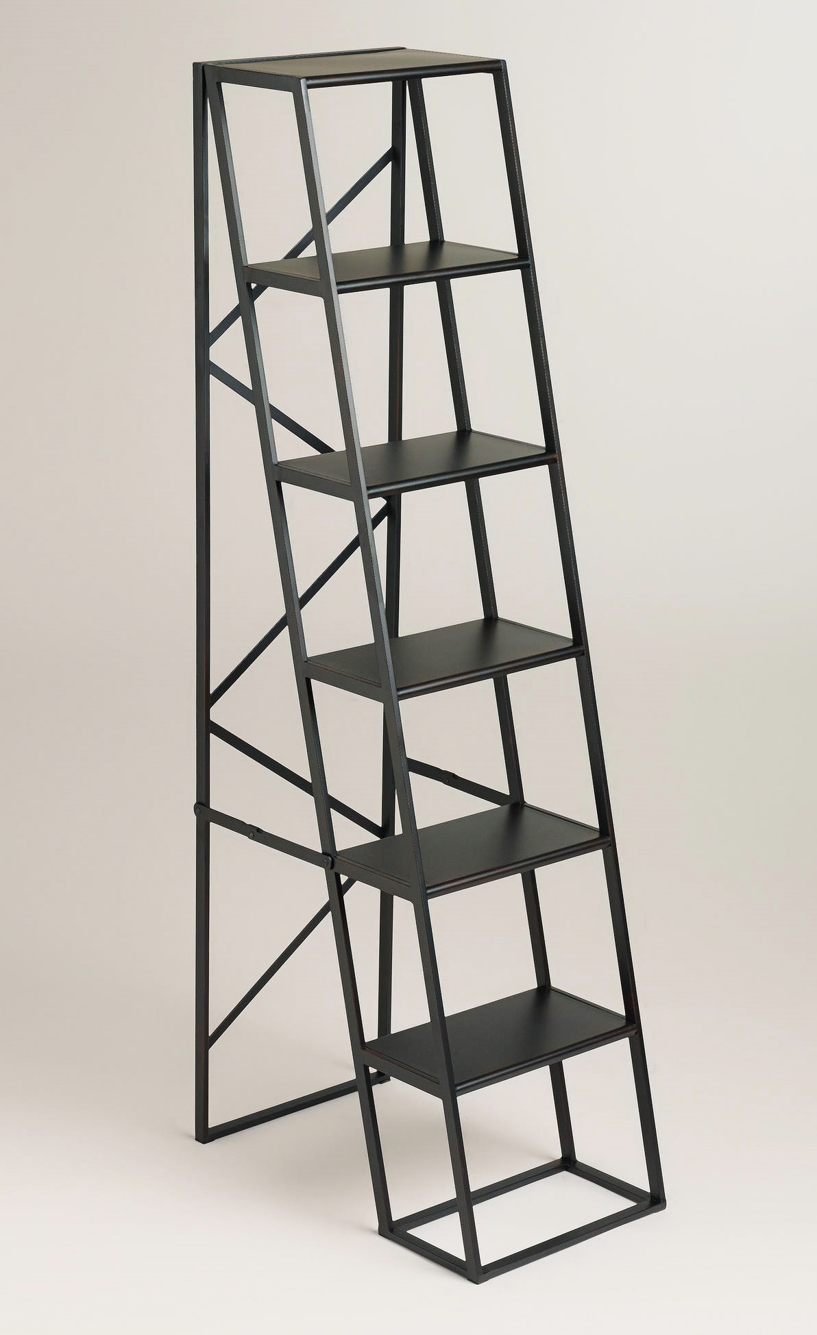 A terrific black metal display ladder will display plants and vintage accessories in my designer house sunroom.