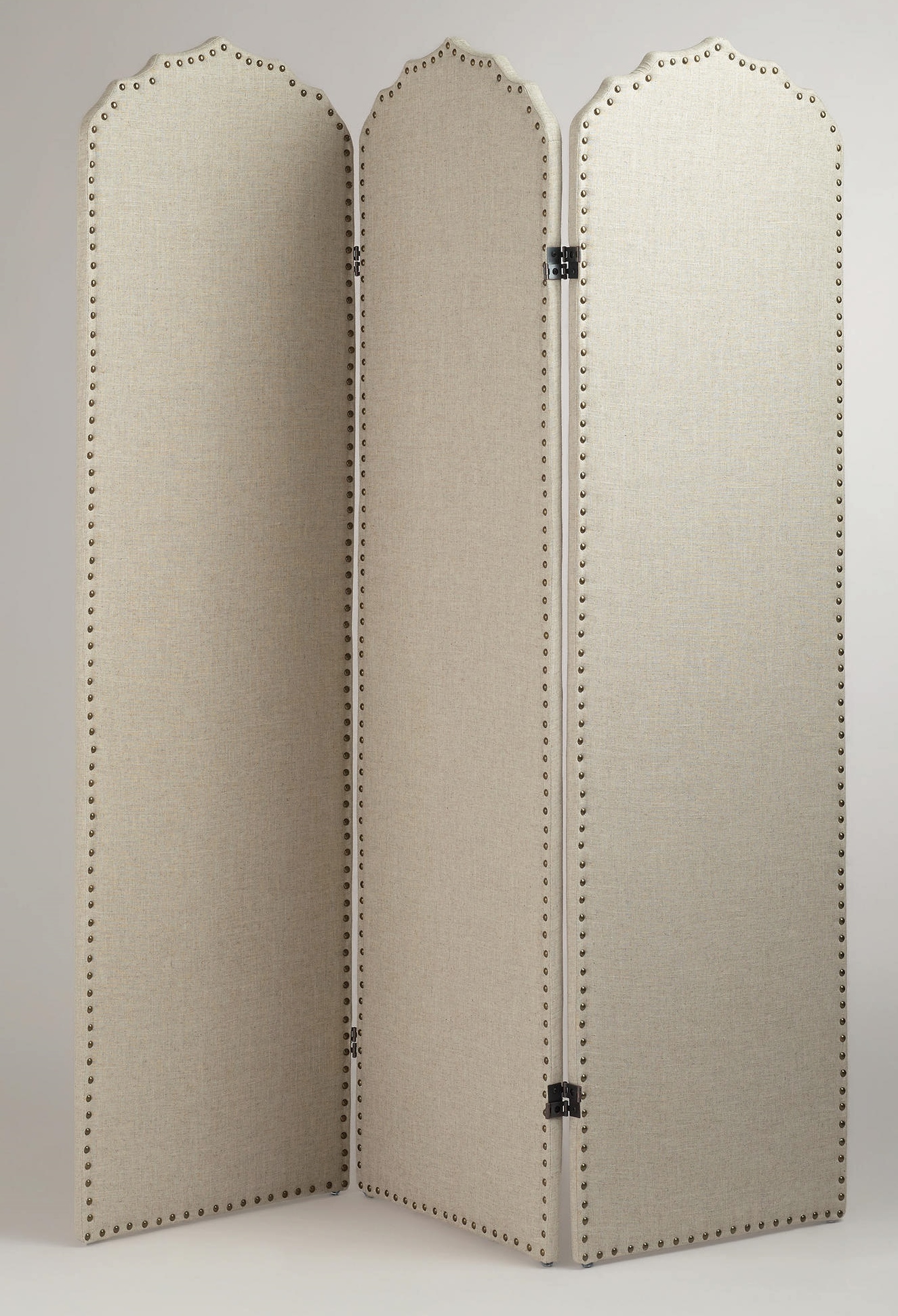 Also, I want to create a sense of intimacy with the reading corner for the Duchesse Brisee. So I picked a very simple ivory linen 3-panel dressing screen with nail-head trim.