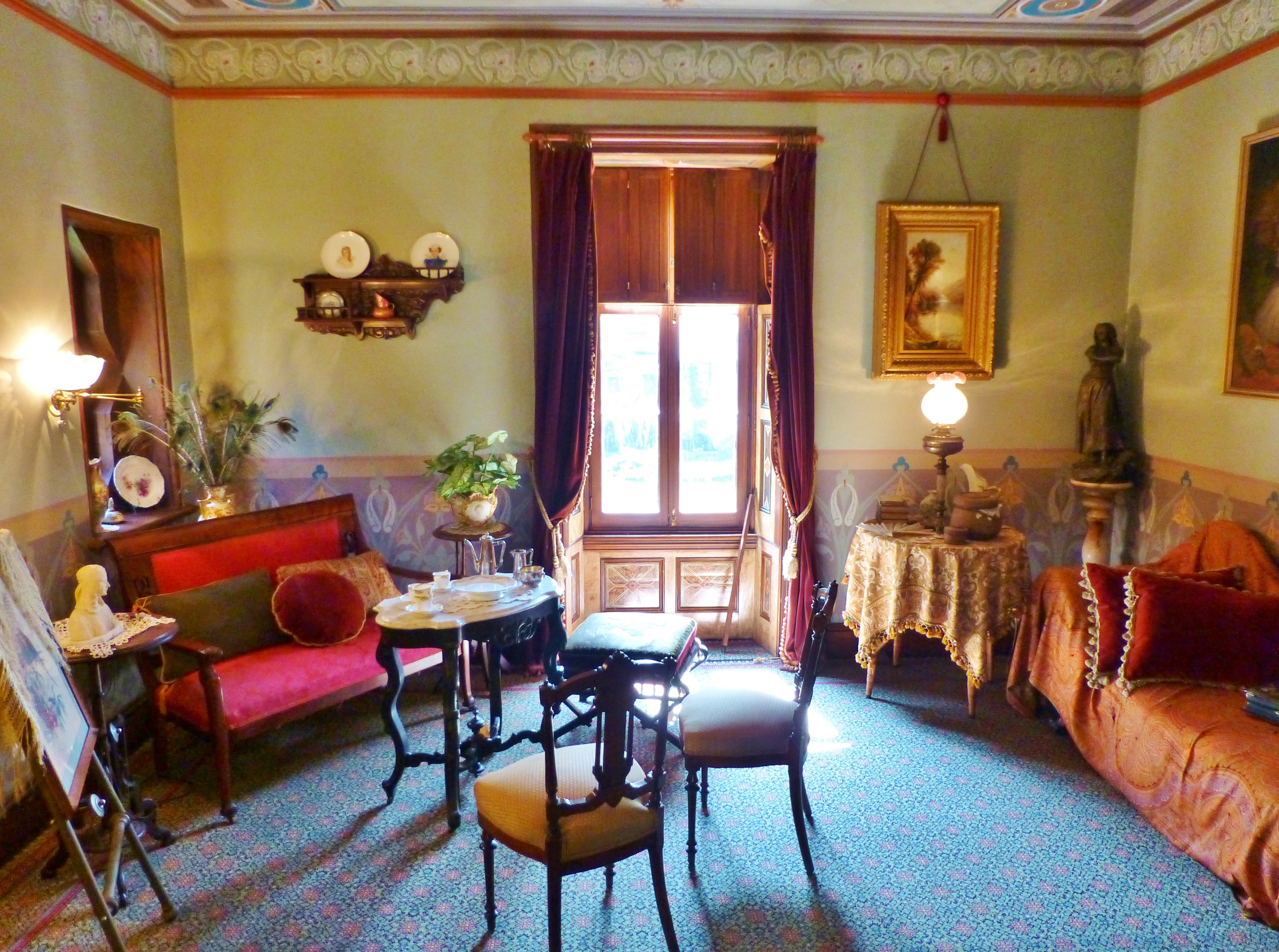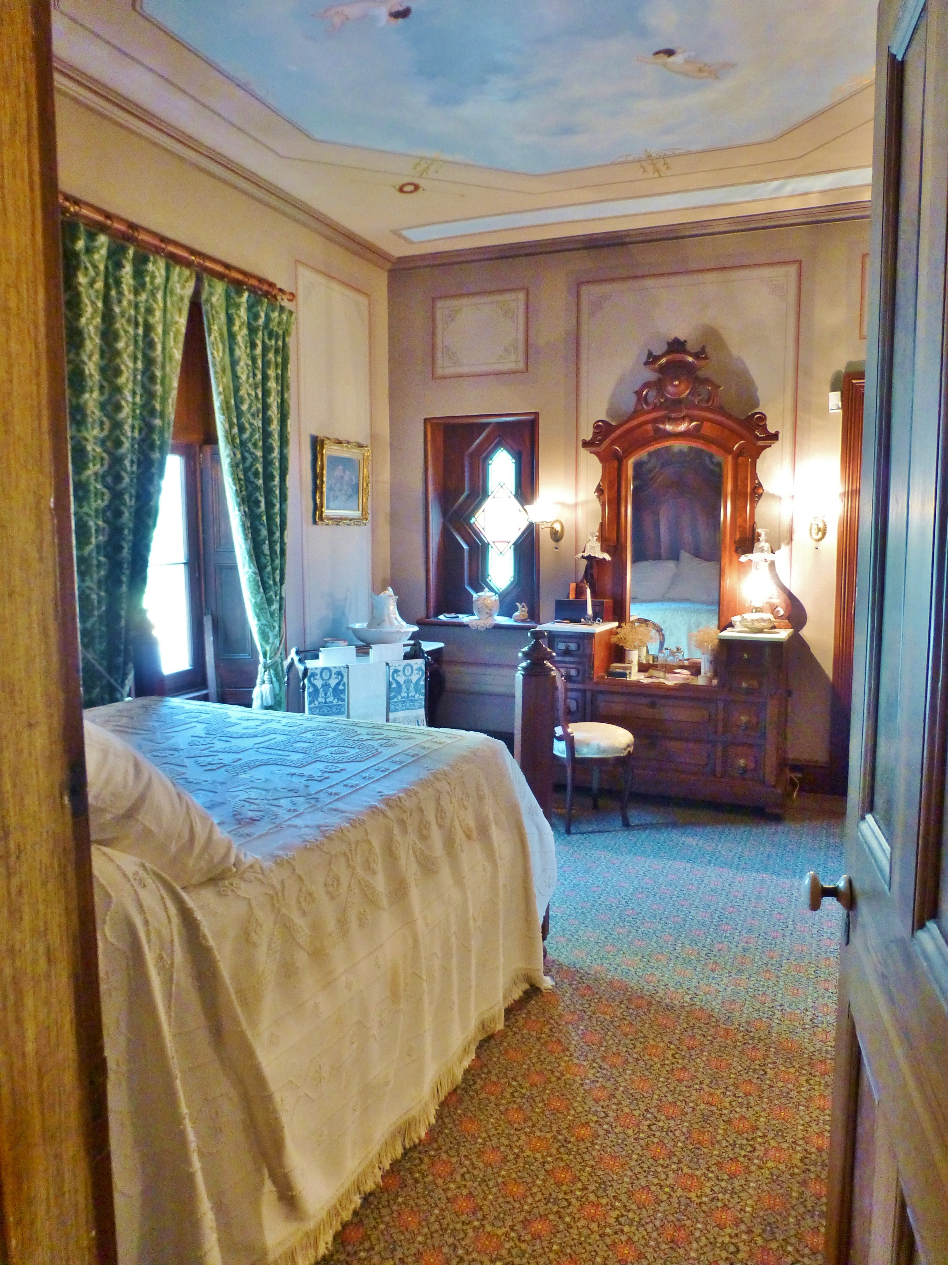 I’ve already shown you the main floor entrance, parlor, study, and dining room. Last time we went upstairs to look at the children’s room. Today, you’re in for a treat, since we are headed into the beautiful Master Bedroom and the adjacent Lady’s Lounge. These high style Victorian rooms are ornate and decadent!