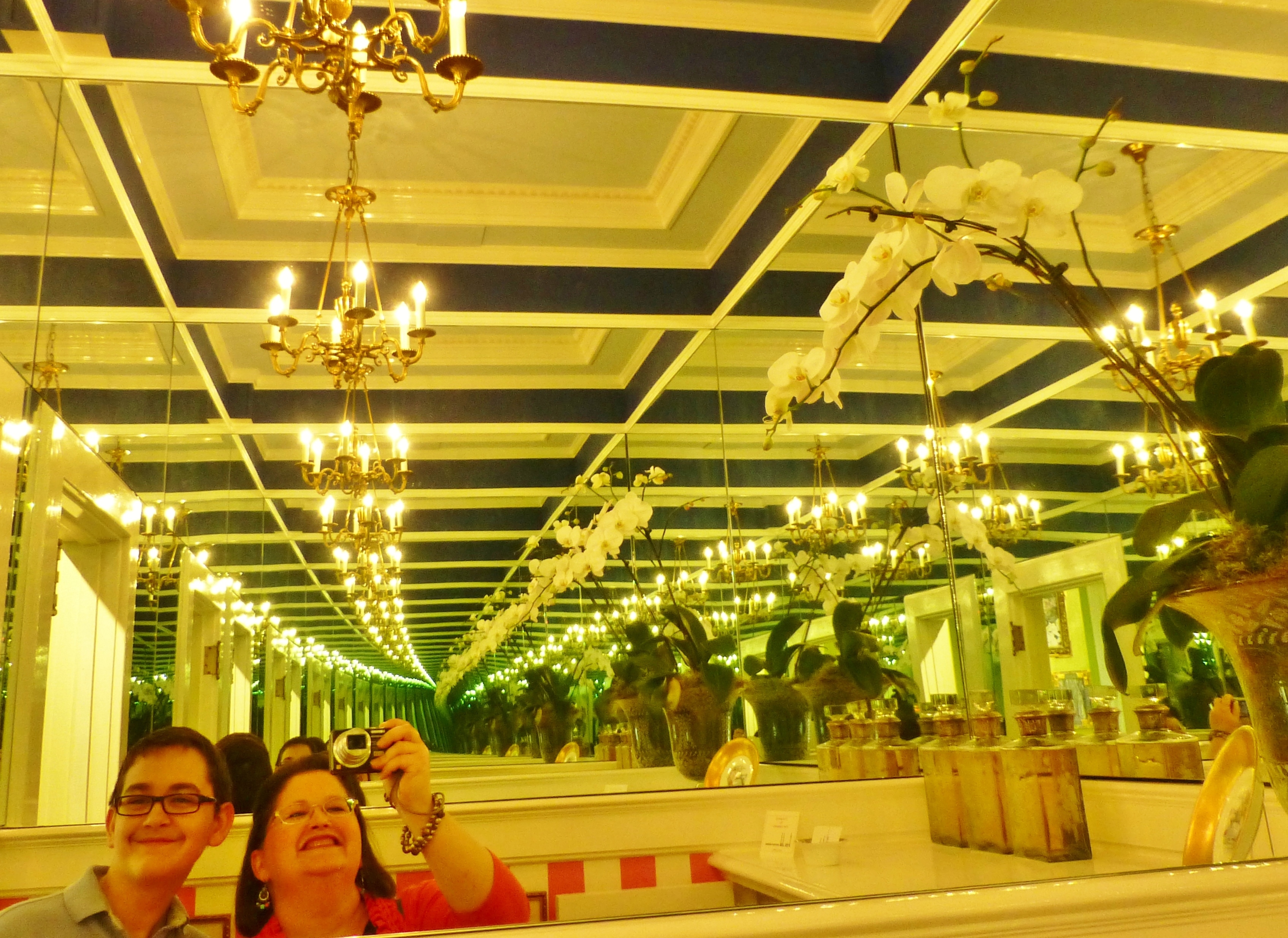 My son, Grady, and I took a selfie in the linen closet. By lining the small space in mirrors, this room becomes a dazzling treat for the eyes. What a memorable space!