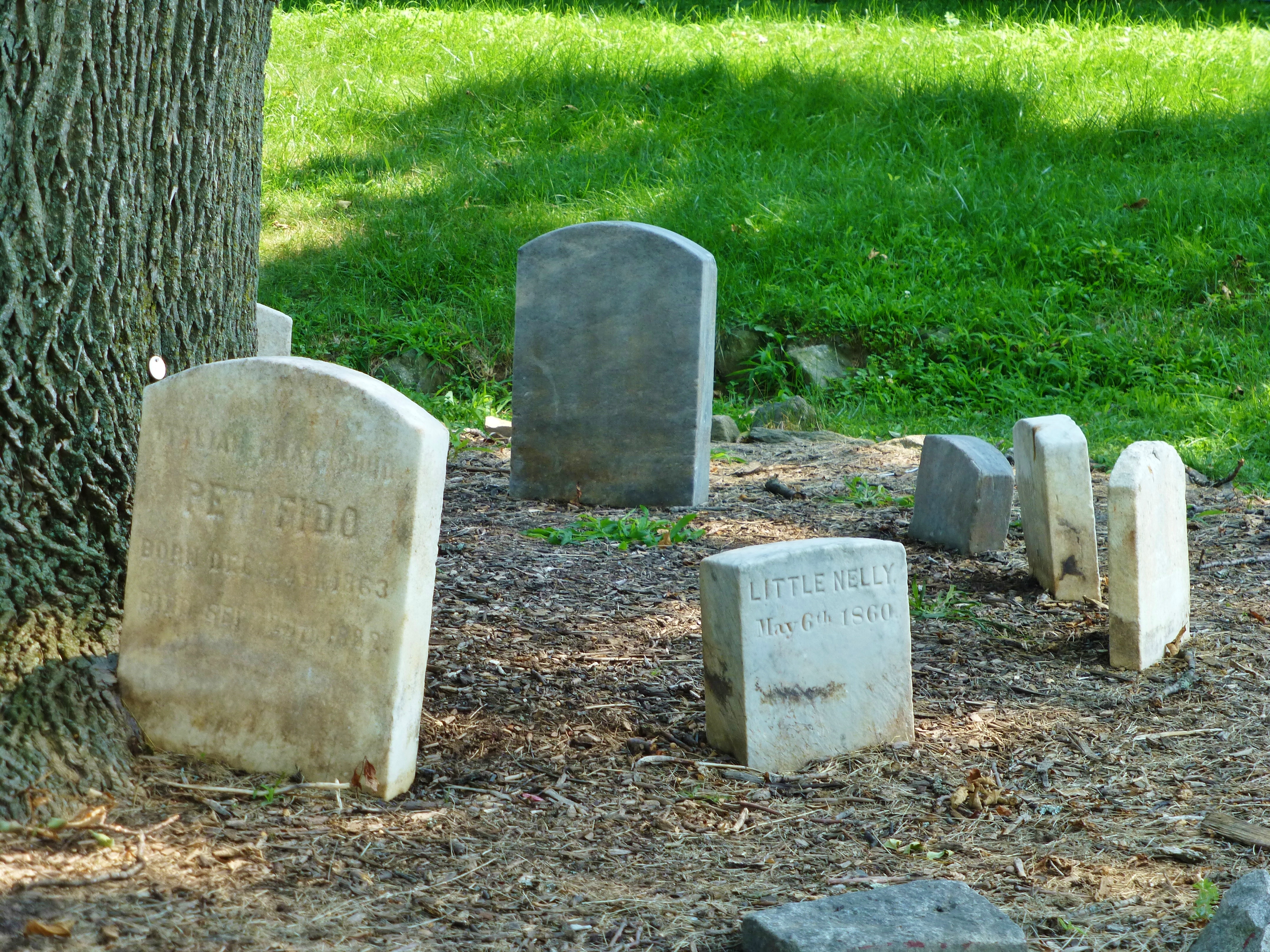 With engraved names like Fido, Little Nelly, Fanny, and Ponto, these Victorian tombstones pay tribute to cherished family pets.