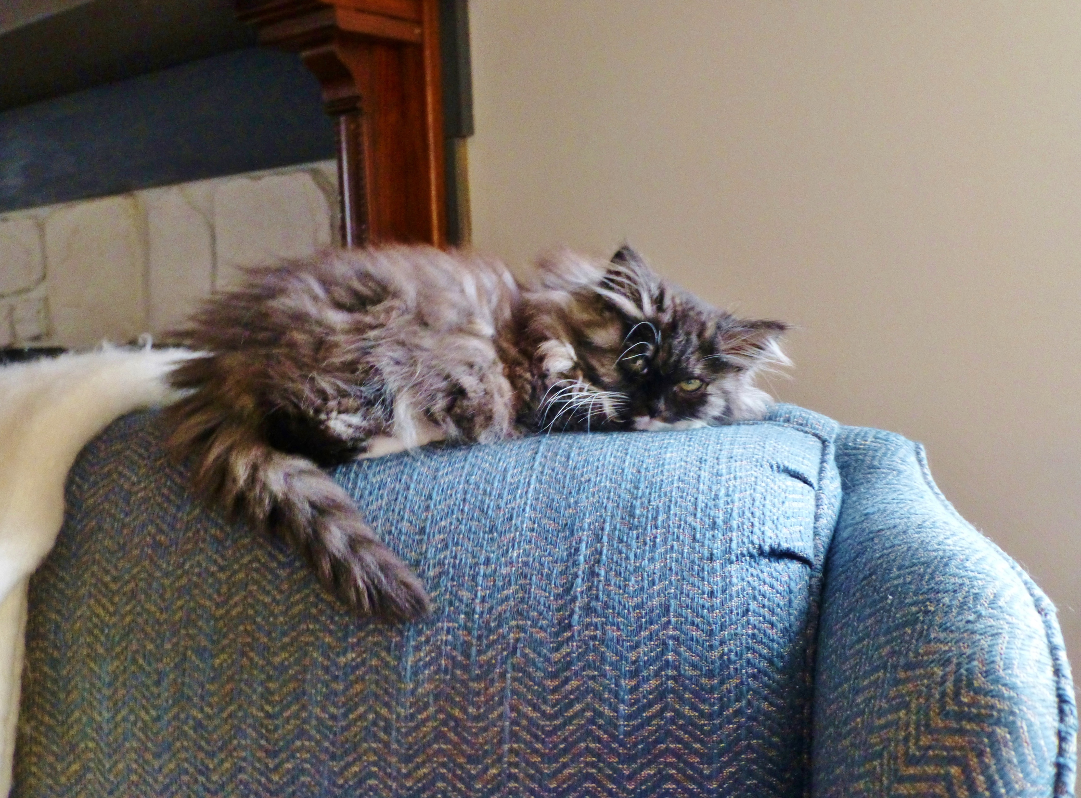 Silvia is a Siberian Kitten. This breed is considered Hypo-Allergenic and I can attest to that fact. We experience absolutely no allergy symptoms while snuggling with this adorable creature. She’s the best!!