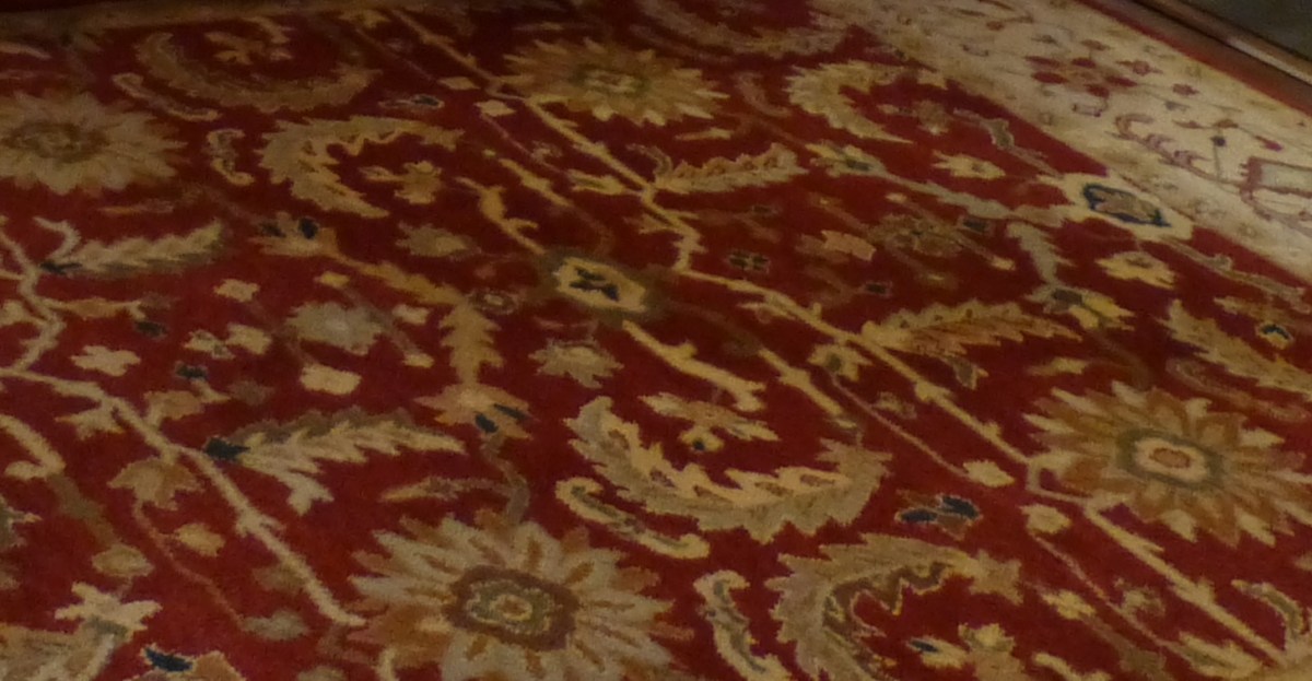 Here’s a blurry little segment of my actual wool Karastan rug. You can see the rich rusty red color, with pale golds and creams. There’s even some teal blue and olive greens thrown in there. I love that the rug is warm tones, and that it has lots of color options which I can bring out in my furniture and accessories.