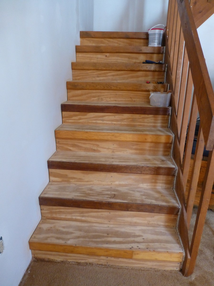 The risers and treads on the staircase are made from plywood, which is something I totally expected. I had planned to simply paint the stairs and then apply a pretty runner. But on closer inspection, these stairs aren’t even paint-worthy.