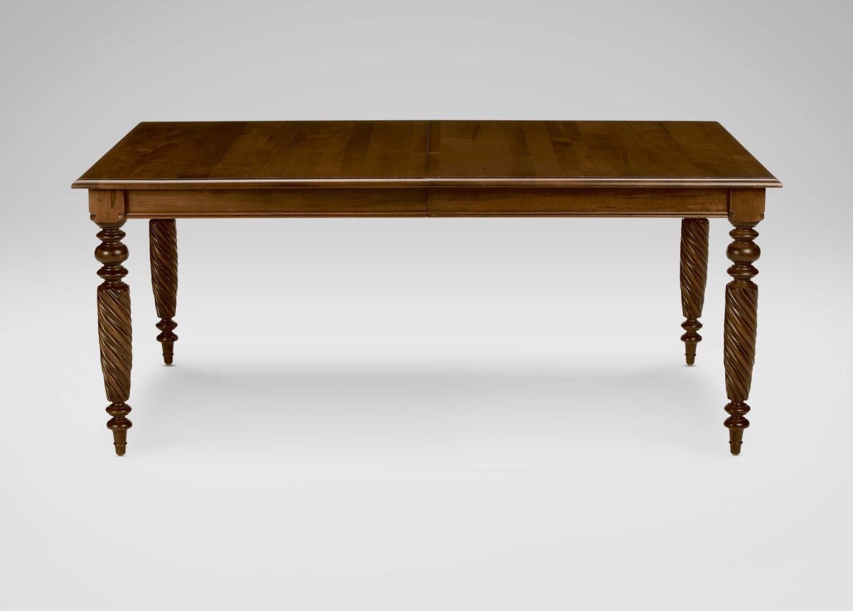 Here’s a picture of the Ethan Allen Livingston Dining Table. I just love the carved legs and the substantial size. Plus, the finish could not be more perfect with our new floors at The Shack.