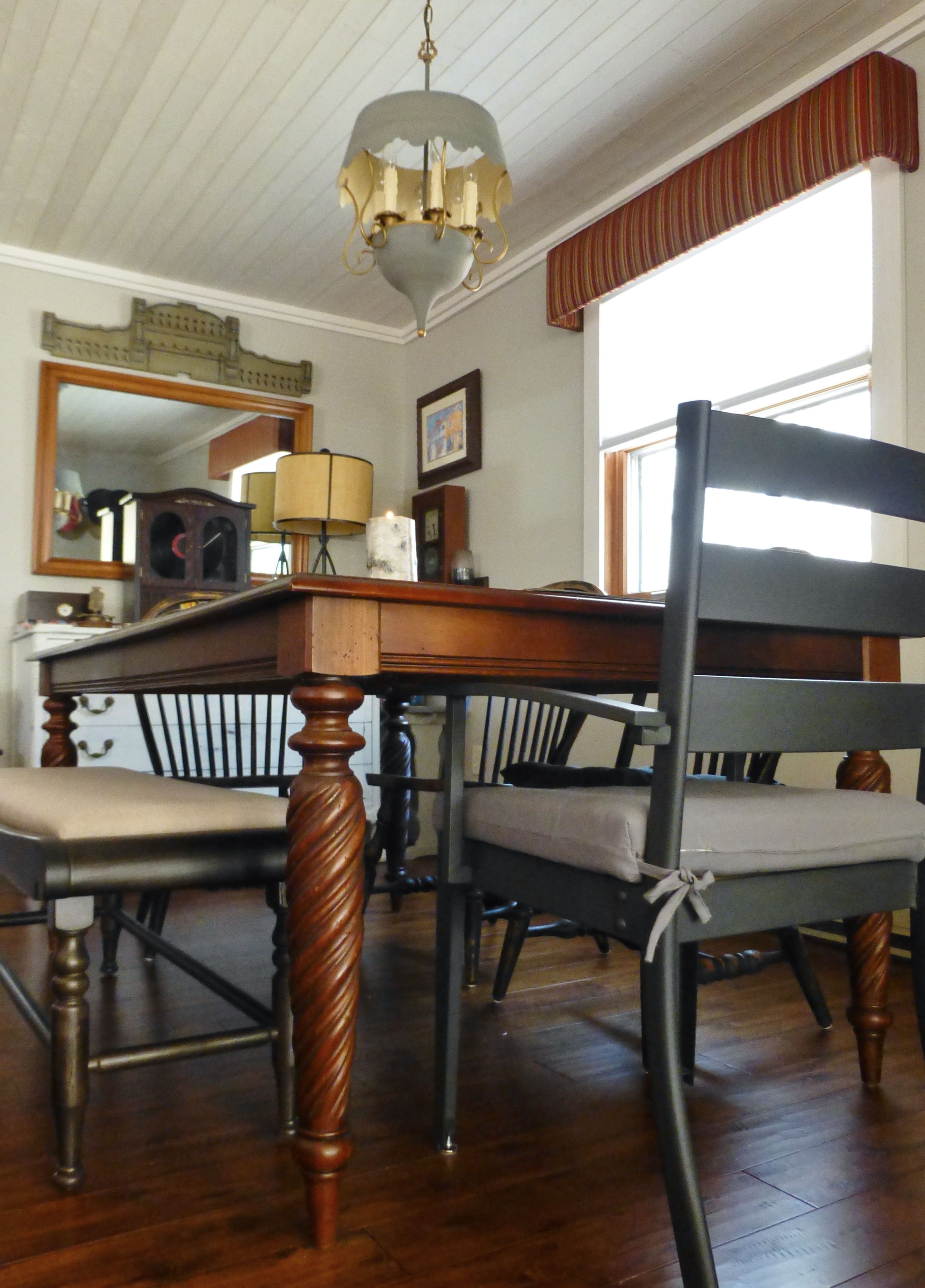 I’ll leave you with this parting image of the wonderful carved legs on my new dining table at The Shack. You can see our planked ceiling in this image too…everything’s coming right along and things are really starting to shape up in our little Poconos cabin.