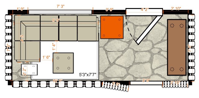 I’d like to share our design process with you before revealing the final AFTER photos. Naturally, the very first thing I did was take accurate measurents and create a floor plan so I could choose appropriately scaled furniture for the space.
